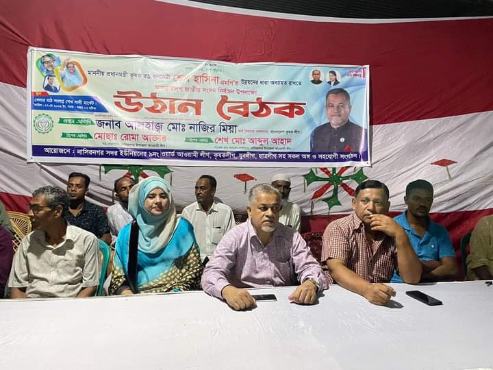 ৯ নং ওয়ার্ডের সাবেক মেম্বার মোঃ আব্দুল হাকিমের সভাপতিত্বে ও নাসিরনগর উপজেলা ছাত্রলীগের সাবেক যুগ্ম আহবায়ক মনির হোসেনের সঞ্চালনায় উঠান বৈঠকে প্রধান অতিথি ছিলেন,