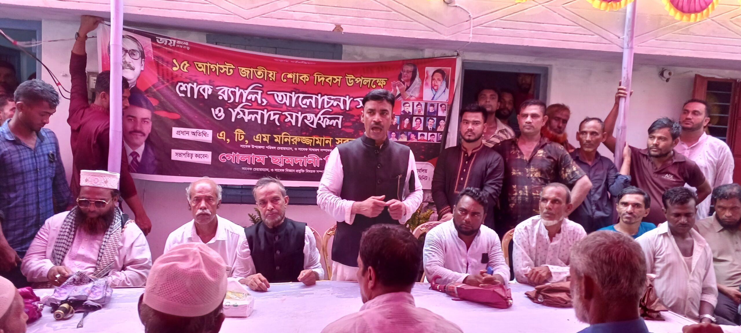 এসময় উপজেলা আওয়ামীলীগের সাবেক বিজ্ঞান ও প্রযুক্তি বিষয়ক সম্পাদক ও সাবেক চেয়ারম্যান গোলাম ছামদানি পিয়ারুর সভাপতিত্বে উপজেলা আওয়ামী লীগ ও অঙ্গসংগঠনের নেতাকর্মীরা উপস্থিত ছিলেন । শোক দিবসের আলোচনা শেষে মিলাদ দোয়া করা হয়।